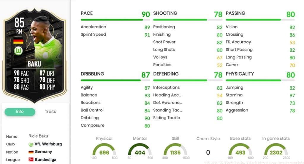 A new Signature Signings Objectives set debuted on Black Friday featuring Wolfsburg midfielder Ridle Baku. This 85 OVR card boasts impressive 90 Pace statistics, with complete attributes displayed below: