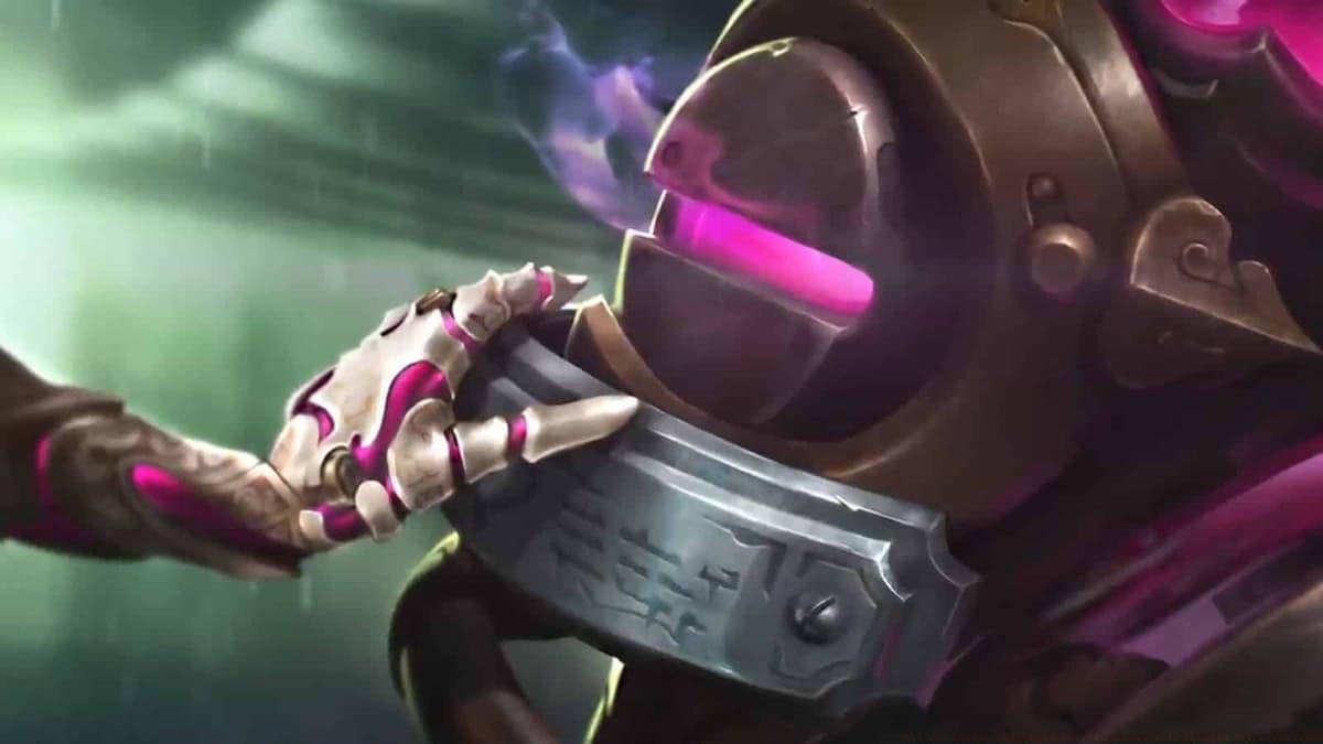 A tightly framed preview of presumed concept artwork for this innovative support materialized during the live stream. The image depicts a mechanized appendage extending toward an enigmatic robotic construct, emanating copious pink-hued gaseous material. This visual direction suggests potential hextech or chemtech influences, possibly connecting to Zaunite or Piltovan origins.