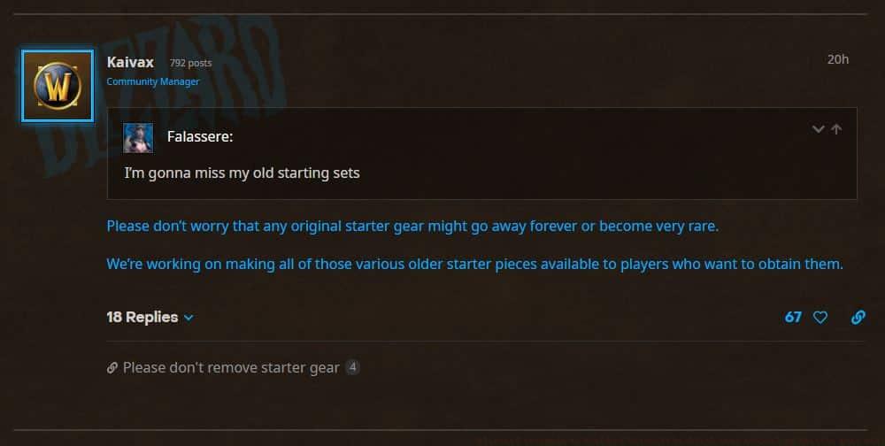 No reproduction without permission:Game Guides Online » Blizzard responds to World of Warcraft backlash over removal of starter gear sets Blizzard addresses World of Warcraft community backlash over starter gear changes with preservation plans and player-focused solutions