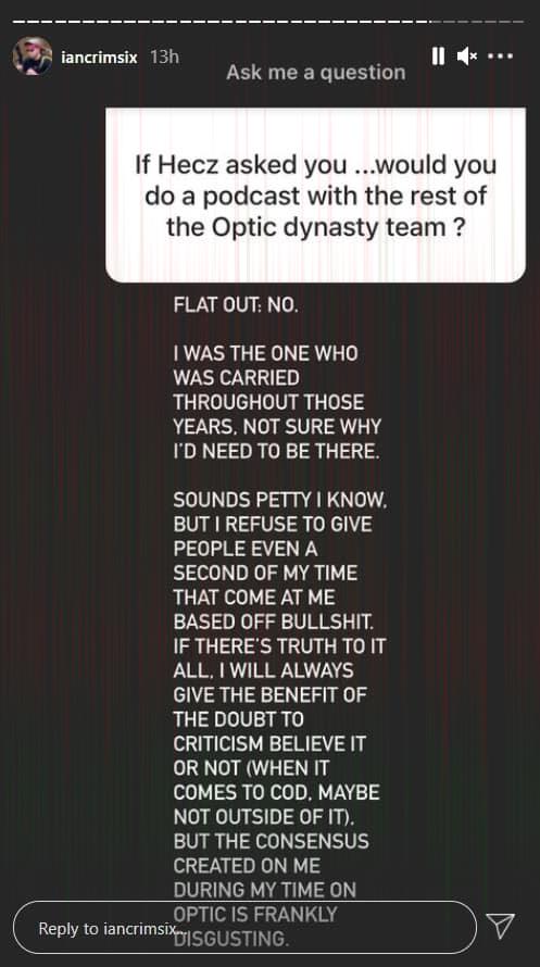 Crimsix shuts down OpTic dynasty podcast, reveals ongoing tensions with former teammates and community criticism