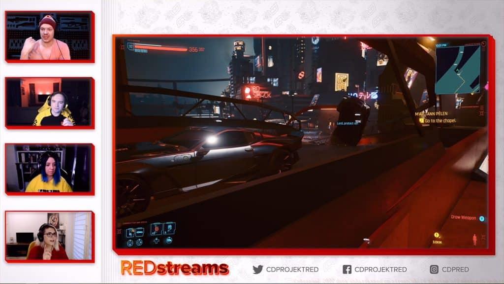 CD PROJEKT RED (Twitch)The timing couldn’t have been worse – discussing vehicle improvements while a car glitch occurred in the background.