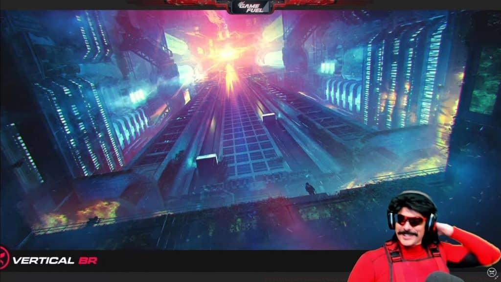 YouTube: Dr DisrespectThe vertical battle royale concept envisions intense combat scenarios unfolding across multiple skyscraper levels.