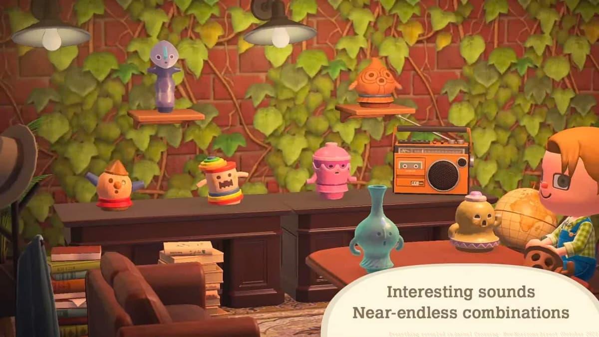 The peculiar musical sculptures return with customization capabilities. One of the most demanded legacy features makes its comeback: Gyroids. These unusual furniture pieces produce sounds when positioned and can complement music in your home or function independently. They originate from Gyroid fragments requiring planting and watering to mature fully. Additional specimens emerge following rainfall. You can also modify their colors to coordinate with your home’s aesthetic. Farewell to monotonous earth tones!