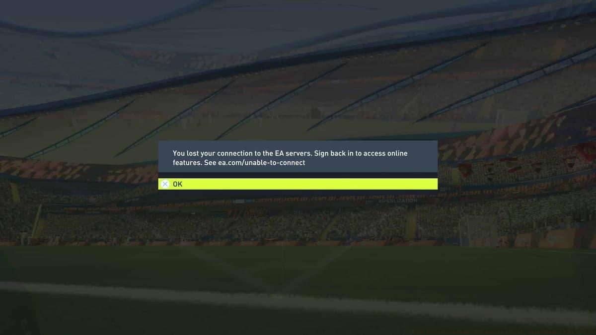 mid-match strongly suggests either (1) local internet connectivity issues or (2) FIFA 22 server outages. Authentication failures when attempting EA server access through game menus similarly indicates potential server maintenance or technical difficulties.