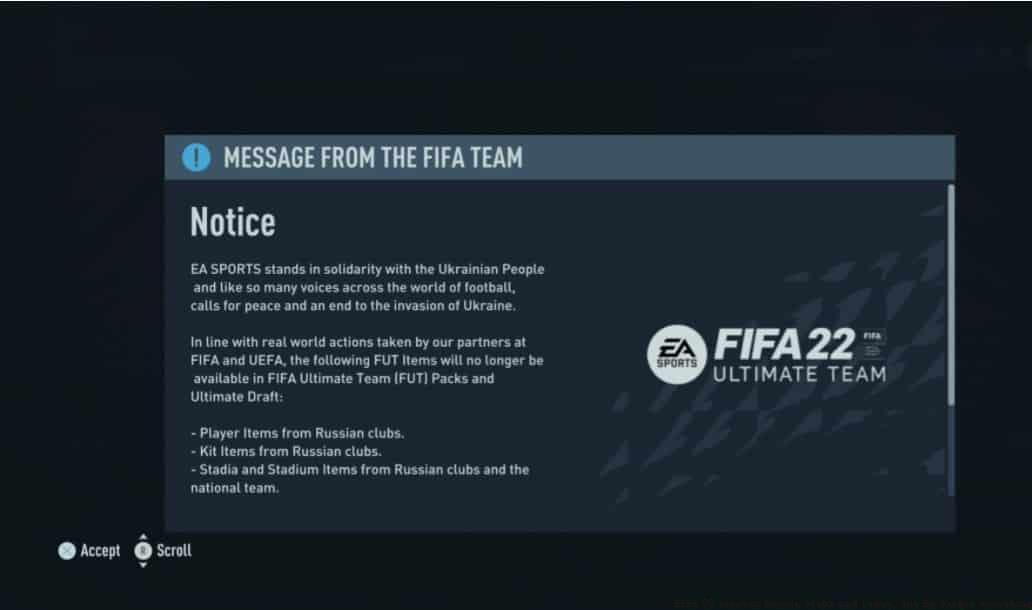 EA SPORTSThis notification interface previously informed players about content being deleted from FIFA 22.