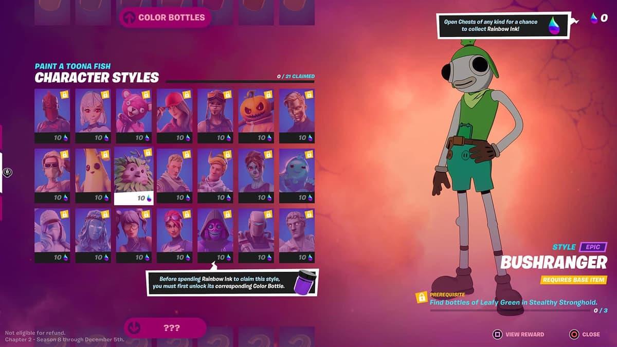 No reproduction without permission:Game Guides Online » Fortnite Color Bottles locations & how to unlock Character Styles for Toona Fish Master Toona Fish customization with complete Color Bottle locations, Rainbow Ink strategies, and time-saving collection methods
