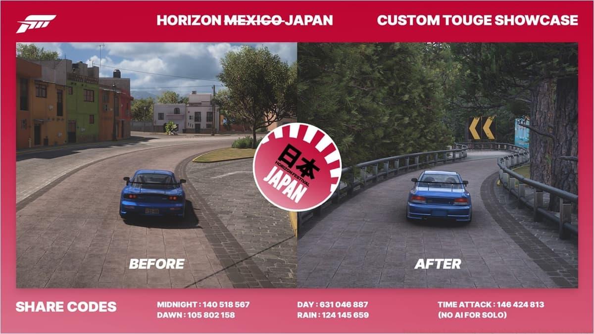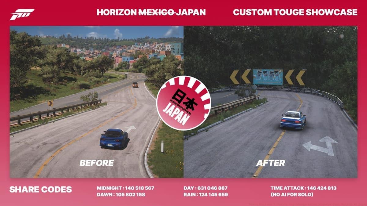 u/onablueplanetComparative imagery illustrates the dramatic environmental shift from Mexican to Japanese aesthetics along the route. This creation has received overwhelming positive reception from the Forza community, with many expressing heightened anticipation for potential official map expansions from Playground Games in Horizon 5’s future.
