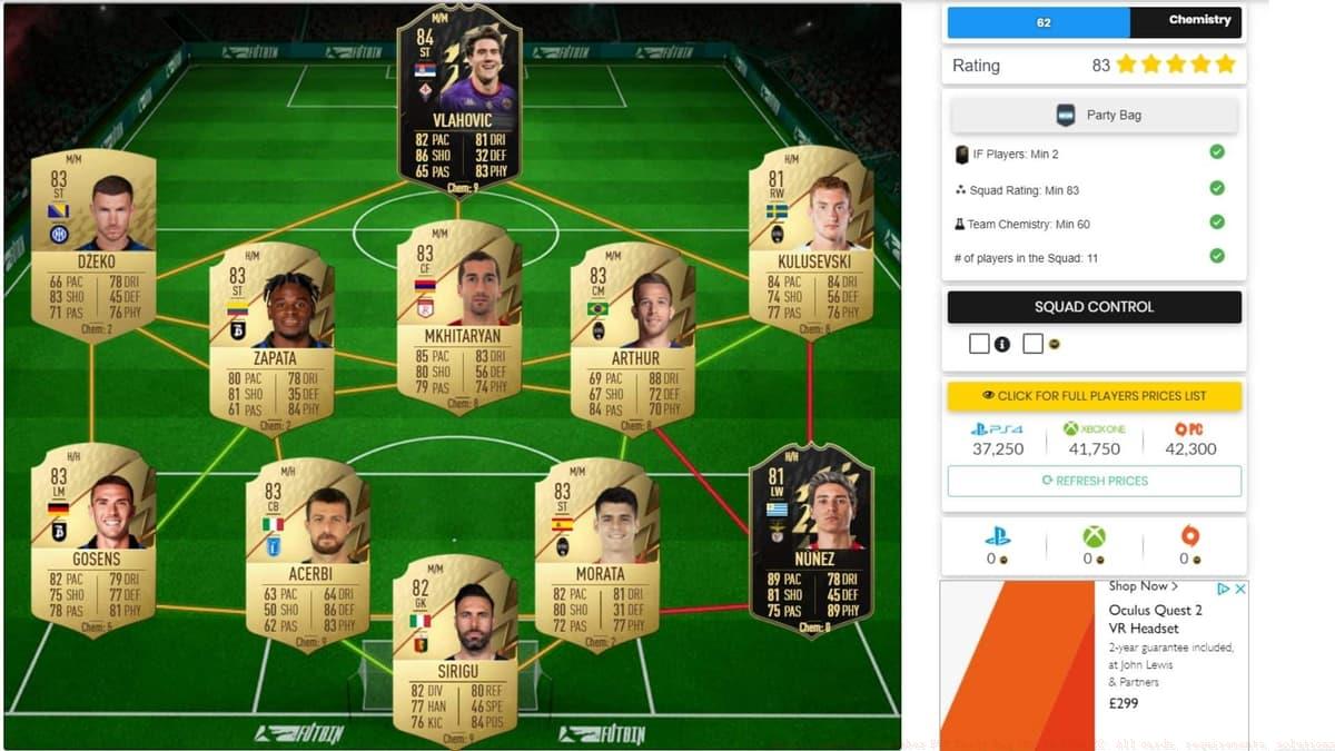 FUTBIN estimates indicate this SBC currently costs between 37,000 and 42,000 coins, varying by gaming platform. These prices fluctuate according to FUT market dynamics and player availability.