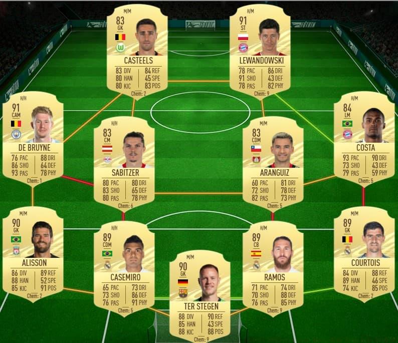 FUTBin estimates the complete SBC will cost between 1.6-2 million coins, making it one of the most expensive SBCs in FIFA 21. Here are optimized solutions for each challenge: