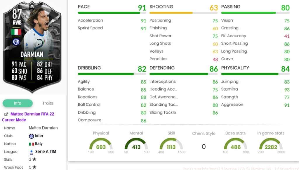 Showdown Darmian stands among FIFA 22’s most complete defensive options even before potential upgrades. Unlike many Showdown cards that depend heavily on upgrades for viability, Matteo Darmian’s base attributes make him immediately competitive. His FUTBIN statistics reveal a remarkably well-rounded defensive profile that fits perfectly with the current gameplay meta.