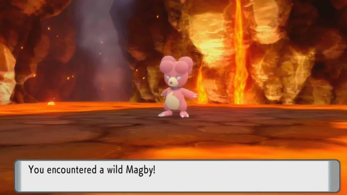 A complete guide to catching Magby, evolving Magmar, and obtaining Magmortar in Pokémon Brilliant Diamond & Shining Pearl.