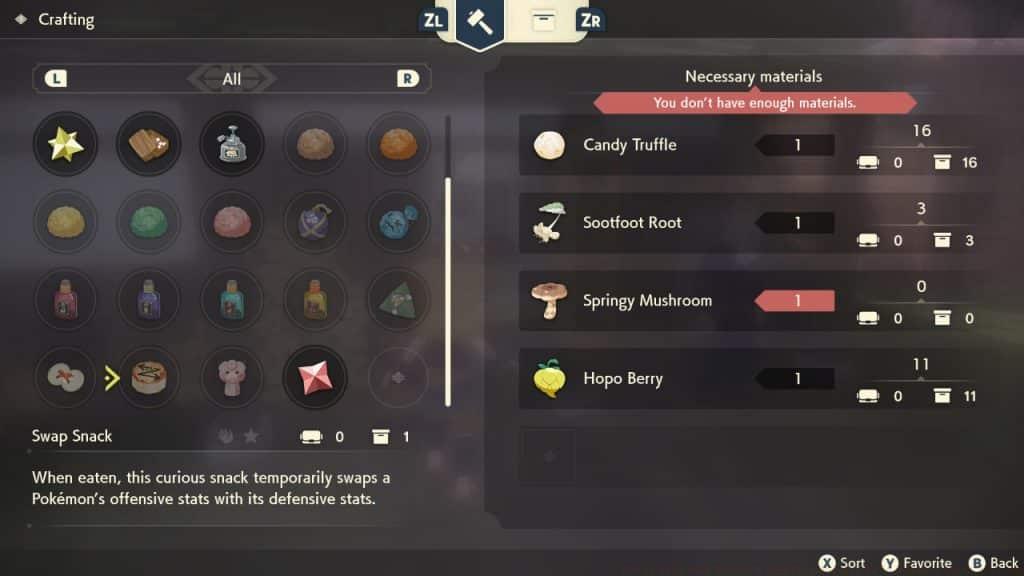 Complete guide to unlocking and crafting Swap Snacks in Pokemon Legends Arceus with battle strategies