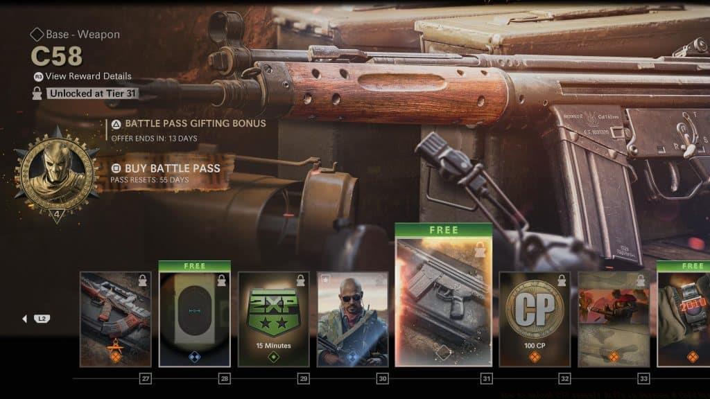 TreyarchComplete the challenge to permanently add the C58 to your armory. This challenge replaced the Season Four Battle Pass Tier 30 reward after the season concluded.