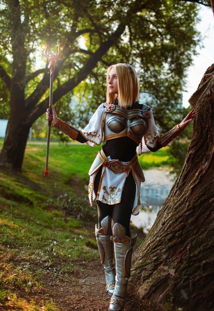 Examining her execution reveals why this cosplay stands apart. The hair styling demonstrates understanding of Lux’s signature look while adapting it to three-dimensional reality. Makeup choices enhance facial structure similarities while maintaining wearability for extended convention hours. Armor construction balances screen-accurate appearance with physical mobility—a frequent compromise point where many cosplays falter. Prop construction for her staff shows attention to both visual accuracy and practical handling. This comprehensive approach exemplifies what separates exceptional cosplay from merely good costume work.