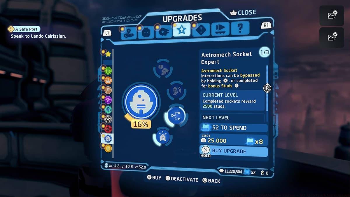Enhancing class capabilities requires strategic resource allocation of Studs and Kyber Bricks. Each ability features three upgrade tiers with progressively increasing costs and diminishing effectiveness gains.