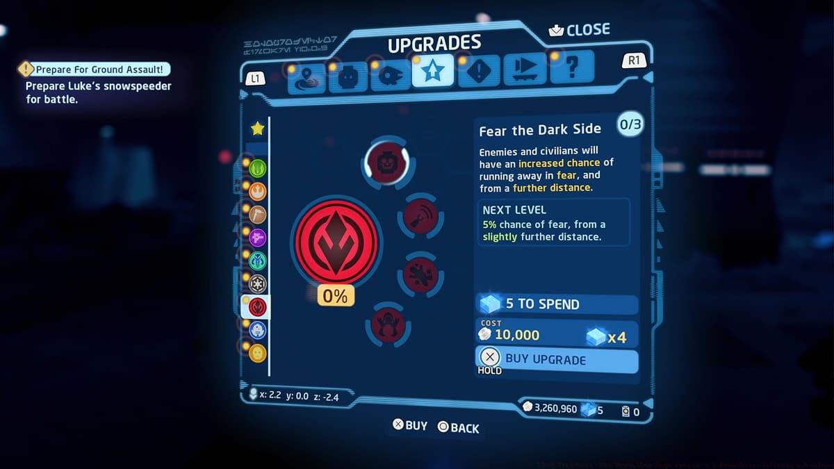 These currencies enable character upgrades across two primary categories: Core upgrades (universal improvements) and class-specific enhancements. Core upgrades provide fundamental benefits like increased movement speed, additional health capacity, and collectible detection abilities. The visual collectible highlighting feature, while useful, can create interface clutter through its blue Force-like aura indicators. Fortunately, TT Games included a convenient toggle option allowing players to disable any unlocked upgrades with a single button press.