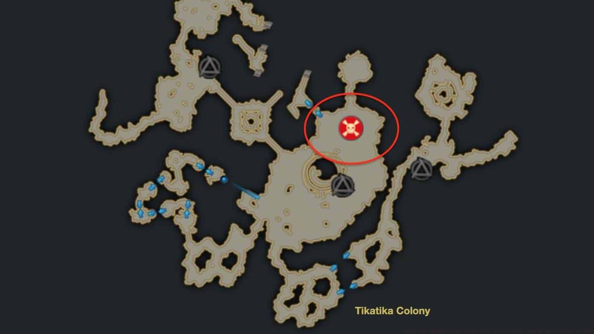 Moake’s territory centers on Tikatika Colony within Punika’s lush landscapes. The optimal approach route begins at Aria Pond triport, heading directly northward into the creature’s tropical domain.