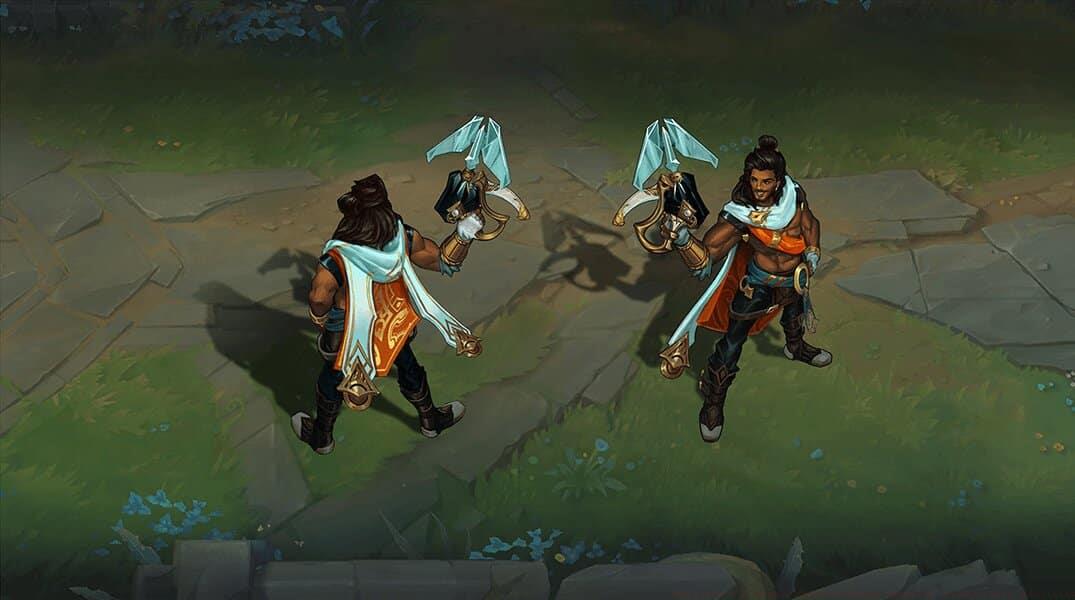 Riot GamesAkshan represents the Sentinel of Light faction in League lore.