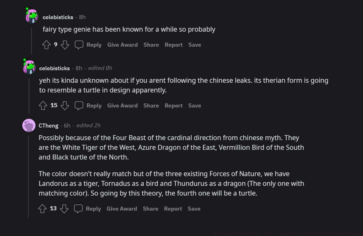 Community scrutiny intensified when another participant highlighted that Chinese Pokemon circles had circulated related rumors since September. “The Fairy-type Genie concept has circulated internally for some time, making this plausible,” they confirmed. “This intelligence remains relatively obscure outside Chinese leak networks. The alleged Therian forme supposedly incorporates turtle-inspired design elements.”