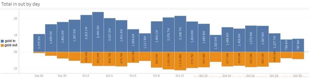 Analytical data visualizations illustrate the daily gold circulation patterns, demonstrating persistent positive net gold generation across player activities. Development teams maintain readiness to implement corrective measures should these metrics approach negative territory. “The player base consistently maintains favorable gold equilibrium daily,” Luxendra explained. “However, we’re observing a gradual decline pattern. Should this trajectory continue toward negative outflow, we will enact preventative countermeasures. Our objective isn’t to eliminate wealth accumulation or drive values to zero. We aim to preserve server-wide gold equilibrium, ensuring currency maintains its significance.”