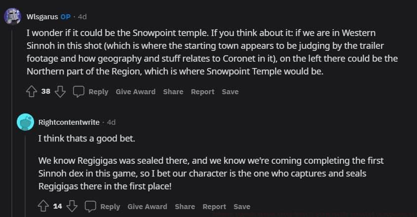 Another enthusiast expanded the theory with historical context: “This alignment makes sense given Regigigas’ established confinement at that location. Since we’re compiling the original Sinnoh Pokedex, our protagonist might be responsible for initially capturing and sealing Regigigas within Snowpoint Temple.”