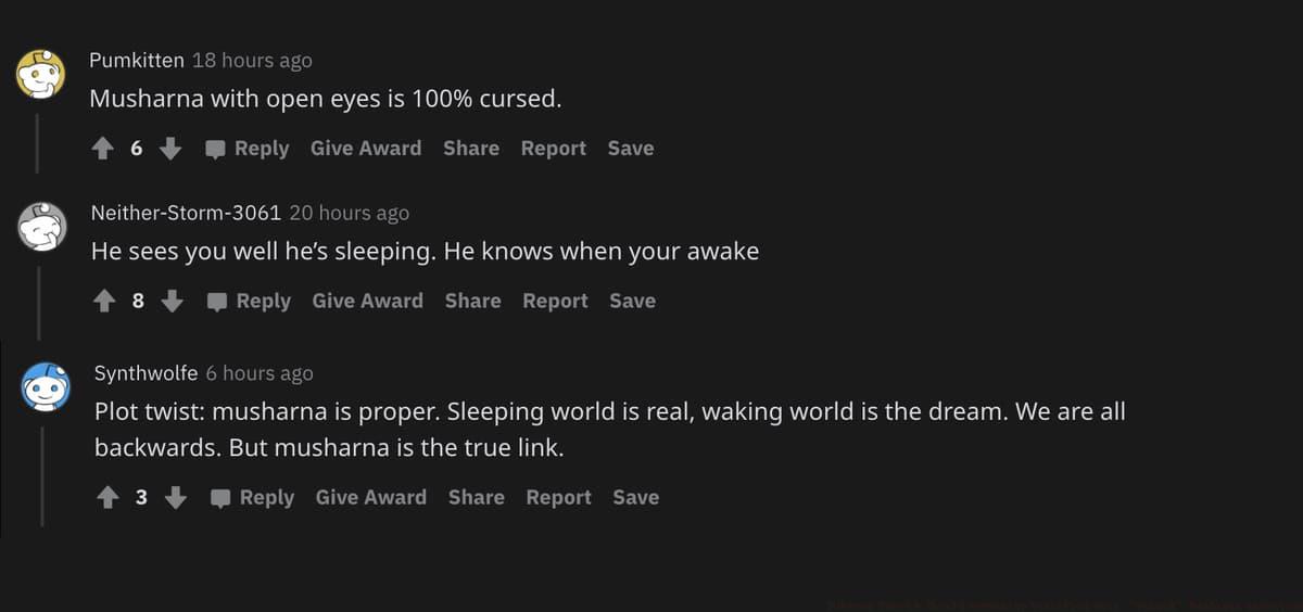 One particularly popular comment referenced holiday folklore: “He sees you when he’s sleeping. He knows when you’re awake.” This playful reference to surveillance highlights how Musharna’s design plays on subconscious fears of being watched.