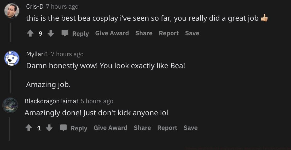 Community response was overwhelmingly positive, with the Reddit post amassing 15,000+ upvotes. Comments praised how the cosplay “looks ripped straight from the game” and captures Bea’s fighting spirit. One fan noted: “The fabric choice for the uniform moves exactly like it does in the 3D models.”