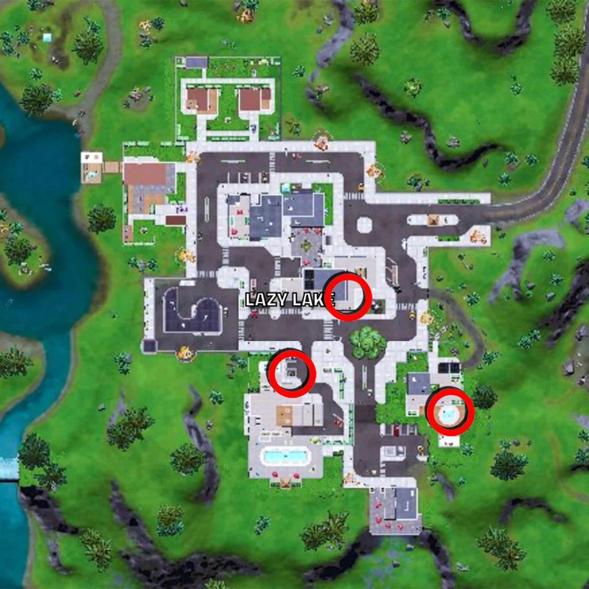 Optimal Landing Approach: Target the pool area southeast of main Lazy Lake first—this location generally sees less traffic than the central car dealership. The gym location provides another excellent alternative with good loot opportunities nearby.